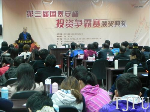 本次颁奖典礼由全国高校金融投资竞赛组委会和深圳市国泰安信息技术有限公司主办,我校承办。共有来自天津大学、天津商业大学、天津师范大学、天津理工大学、北京信息大学、北京石油化工大学、北京方正软件学院、内蒙古大学和河北金融学院等十余所高校的代表队参加。