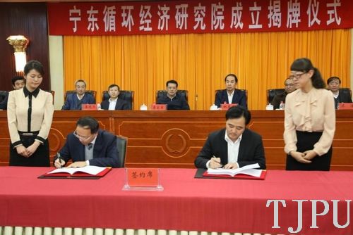 2013年11月底,宁东循环经济研究院在宁夏回族自治区银川市正式揭牌成立。宁夏回族自治区党委常委、自治区常务副主席兼宁东能源化工基地管委会主任袁家军,自治区副主席姚爱兴出席揭牌仪式并为宁东循环经济研究院揭牌。我校生物化工研究所所长吕晓龙研究员出席揭牌仪式,并与宁东能源化工基地管委会签定合作协议,在宁东循环经济研究院内建立宁东工业废水处理技术实验室。