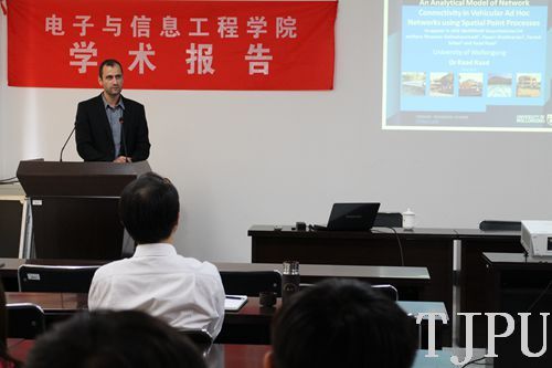 为进一步加强两校相关领域的科研合作,5月4日RaadRaad博士还以“利用空间点过程方法构建交通自组网中网络连接的分析模型”为题作了学术报告。他围绕高速移动物体间相互通信的物理机制,就网络连接的概率模型进行了说明。同时,他对未来与我校相关领域的研究合作提出了期望。