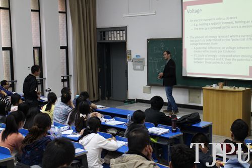 在讲授《电路与设备》课程过程中,RaadRaad博士由电的概念引入,通过形象的比喻将本来枯燥的电路知识具体化,深入浅出地为学生们开启了电路科学的第一课。课后,部分学生在课余时间也与博士进行了近距离交流,了解伍伦贡大学的学习生活和澳洲文化,课堂气氛活跃。同时,别具一格的澳方教育也吸引了诸多专业老师参与其中,为我校的教育改革注入新的活力。