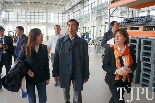 莱茵瓦尔应用技术大学Klotz校长向张书记介绍机械实验室