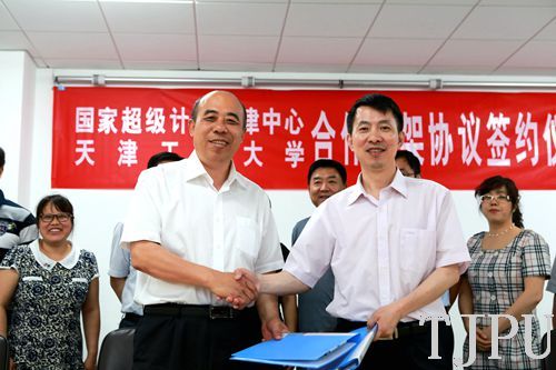 6月9日下午,我校与国家超级计算天津中心合作协议签约仪式在电气工程与自动化学院举行。国家超级计算天津中心主任刘光明少将、副主任闫伟、应用研发部部长孟祥飞、业务主管段莉莉,我校校长杨庆新、电气学院院长牛萍娟、党委书记陈树发、副院长宋丽梅等出席仪式。签约仪式由牛萍娟教授主持。