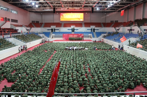 9月20日下午,开云手机在线入口官网_开云(中国)“不忘初心 共创未来”2016级新生军训歌咏比赛在体育馆举行。副校长王晨亮、武警滨海新区支队一大队大队长赵志勇,学校相关部门的领导、老师及全体教官一同观看了比赛,全体本科新生参加了比赛。