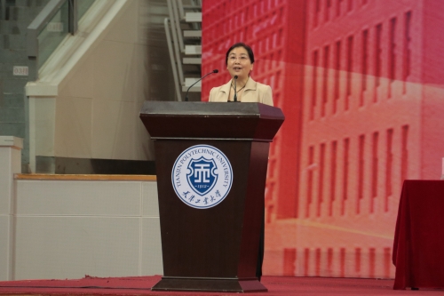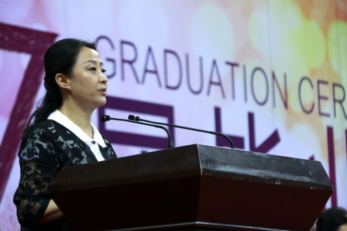 杨庆新校长致辞,他代表学校向毕业生表示最热烈的祝贺,为毕业生所取得的成绩感到欣慰,为毕业生给学校带来的荣誉表示感谢。杨庆新校长给毕业生提出五点期望:一要有远大理想,二要有坚定信念,三要有高尚境界,四要有责任担当,五要有感恩之心。杨庆新校长勉励毕业生在今后的工作生活中继续锤炼品格,开拓创新,发扬母校“严谨、严格、求实、求是”的校训精神,他深情寄语毕业生:“无论你们在国内外高等学府继续研学深造,还是扎根西部和边疆;无论你们追寻创新创业的梦想,还是深入基层锻炼成长,希望你们远离浮躁,不忘初心,砥砺前行,在专业领域积极创新进取,让世界倾听到你们的中国声音;在工作上爱岗敬业,在平凡中彰显出你们卓越的综合素质;在生活中追寻崇高价值,谱写出辉煌灿烂的无悔人生!”谆谆教诲萦于耳畔,殷殷期盼溢于言表。