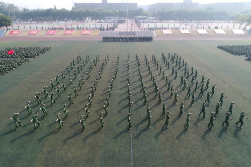9月30日上午,我校2017级学生军训成果汇报大会在望星体育场隆重举行。天津警备区学生军训工作办公室主任辛维刚大校,武警天津市总队滨海新区支队副支队长秦长江上校、一大队政治教导员蒋林林少校,天津市教委体卫艺处处长张华泉,西青区人民武装部参谋宫英杰少校,校党委书记连洁,校党委副书记、校长杨庆新,校党委副书记刘亚男,副校长赵宏、王晨亮出席了汇报大会。学校相关职能部门负责同志、各学院党委副书记参加了大会。