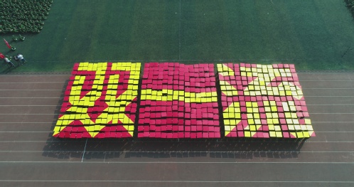 第一部分“旗帜领航”。旗帜引领前进方向,核心凝聚奋斗力量,红色点亮青春,担当诠释使命。来自五营计算机学院589名新生组成的综合方队精神饱满、气势豪迈,在场地中央组成巨幅国旗、党旗,表达了我校师生庆祝中华人民共和国成立68周年、喜迎党的十九大胜利召开的喜悦之情以及对党和国家的无限热爱。第二部分“迷彩青春”。由各个学院组成的女子队列表演、男子棍术表演、女子擒敌表演、防暴队形表演,展示了我校新生经过军训洗礼后朝气蓬勃的精神风貌和良好的军事素质。第三部分“砥砺奋进”。由计算机学院592名新生组成“天工大 双一流”,全场高唱《开云手机在线入口官网_开云(中国)校歌》,表达了我校师生对于入选“双一流”建设高校及学科名单的欣喜之情,以及建设好国内一流、有特色高水平工业大学的雄心壮志和坚定决心。武警天津总队滨海新区支队一大队政治教导员蒋林林同志宣读《表彰决定》,表彰了军训工作中涌现出的一批优秀个人和先进集体。