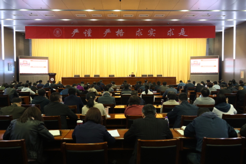2023年4月17日上午,我校举行学习贯彻习近平新时代中国特色社会主义思想主题教育读书班开班式暨专题报告会。校党委书记、校主题教育领导小组组长沈江作开班讲话,校领导、全校处级领导干部参加。本次读书班特邀天津市委党校龚艳教授作专题报告。会议由校党委常委、组织部部长沈浩鹏主持。