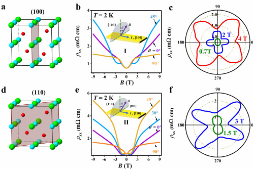 近年来,磁性拓扑量子材料的兴起为凝聚态物理以及自旋电子学领域研究开辟了新的研究方向。拓扑量子材料特殊的能带结构表现出高载流子迁移率、大反常霍尔效应和线性磁电阻等新奇量子效应,使得其在自旋电子学领域具有潜在的应用价值。稀土基反铁磁half-Heusler合金是一类重要的磁性拓扑量子材料—磁性Weyl半金属候选体系。针对稀土基half-Heusler合金高质量单晶制备难,其拓扑相关物性表征方法欠缺等挑战,本系列工作首先利用自助溶剂方法,制备出half-Heusler型高质量HoPtBi和TbPtBi单晶样品。磁电输运测量发现,伴随着磁场对能带结构的调控,通常会诱发系统对称性发生变化,例如磁结构相变、结构相变、拓扑相变等。