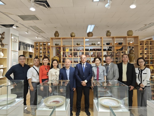 当天下午,代表团一行对我校纺织科学与工程学院、分析测试中心、中华优秀传统文化与技艺国际传承创新基地进行了参观。林大辉主席对我校纺织学科发展和前沿技术以及分析测试能力表示赞赏,对我校中华优秀传统文化与技艺传承创新基地,特别是郑勇老师的陶艺工作室表现出极大兴趣,提出希望尽快落实两校之间的合作意向。