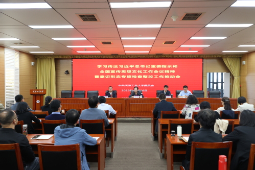 2023年10月26日,我校在会议中心第七会议室召开学习传达习近平总书记重要指示和全国宣传思想文化工作会议精神暨意识形态专项检查整改工作推动会。校党委书记沈江、副书记胡英江,驻校纪检监察组组长赵强出席会议,学校各部、处及直属部门主要负责人,各基层党委、党总支、直属党支部书记,各学院分管学生工作党委副书记参加会议。会议由胡英江副书记主持。