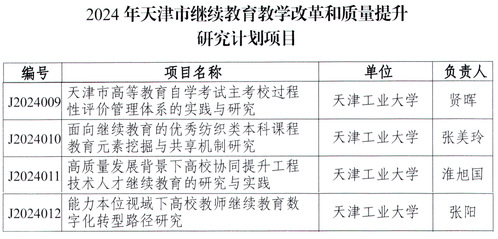 近日,经学校组织申报、市教委专家评审,我校《天津市高等教育自学考试主考校过程性评价管理体系的实践与研究》等四项课题获批2024年天津市继续教育教学改革和质量提升研究计划项目立项,获批项目数量位居天津市普通高等学校第一。