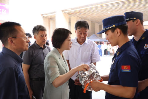 主题活动还设置了室外展示观摩内容,让同学们参与互动体验,观看救助演示、聆听技能讲解,“零距离”感受应急安全文化和理念。在应急安全宣传大篷车前,同学们通过沉浸式体验,学习消防安全、用电安全、烟雾逃生和地震避险技能;在气象指挥车前,同学们通过气象监测设备连线,了解到气象灾害监测、预警、播报和防控等知识和流程;在蓝天救援队救援演示区,同学们体验并掌握了心肺复苏、急救包扎等方法,通过应急服装和急救包准备及应用,更强化了自身安全防护意识;在城市消防和森林消防车辆装备前,同学们近距离观看演示,在消防员指导下演示操作消防装备,增进消防救援体验,提升防火安全意识;在12350应急安全举报热线宣传台前,同学们倾听讲解,熟悉和掌握如何识别身边隐患、如何举报安全生产违法行为、如何应对身边风险,有效提升排查隐患维护安全水平。