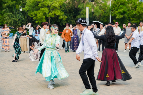 民族歌舞展演区,各民族学生用歌舞、民乐等多种艺术形式,热烈庆祝中华人民共和国成立75周年,中华民族亲如一家的团结氛围浓烈。轻盈动听的蒙古族马头琴、优美欢快的哈萨克族“加尔加尔”舞蹈、热情洋溢的维吾尔族“麦西来甫”大合跳……一个个节目,都蕴含着民族智慧与创造力,无不体现中华优秀传统文化的包容与开放,让现场师生洋溢在和美大家庭的愉悦气氛中。