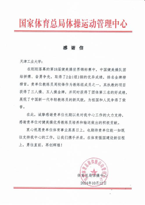 世界健美操锦标赛是由国际体操联合会主办的全球最高水平竞技健美操赛事,本届赛事也是2025年在成都举办的第12届世界运动会的资格赛。中国健美操队时隔六年强势回归,重新确立了中国在世界健美操领域的领先地位。国家体育总局体操运动管理中心日前专门向学校发来感谢信,在信中诚挚感谢学校长期以来对国家体育总局体操运动管理中心工作的大力支持,感谢学校对健美操优秀教练员培养和输送作出的积极贡献。