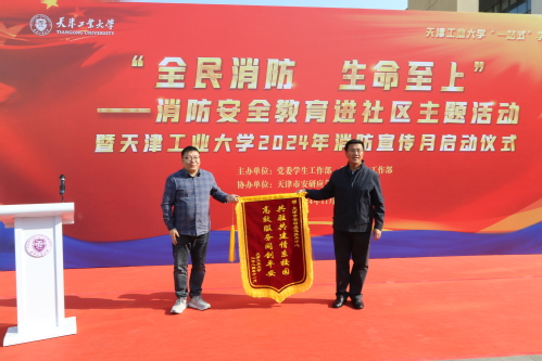 “使用灭火器的四字口诀是什么?”“发生校园火灾,学生应该撤离还是去救火?”2024116日,我校在东苑食堂广场举办消防安全教育进社区主题活动暨2024年消防宣传月启动仪式。校党委副书记胡英江出席活动,并向天津市安研应急技术中心赠送锦旗。学校相关职能部门负责同志、各学院师生代表参加了活动。