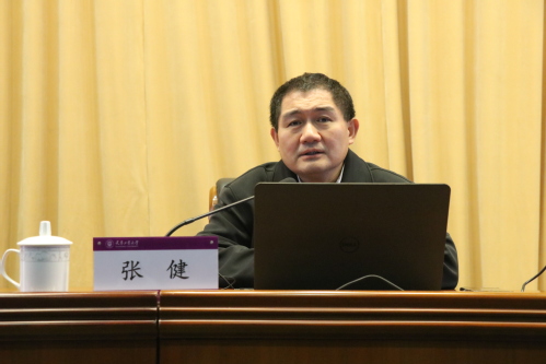 张健教授以《为中国式现代化提供强大动力和制度保障——学习党的二十届三中全会精神和习近平总书记关于全面深化改革的重要论述》为题作了专题报告。张健教授从“两个为什么”即“为什么中央反复强调做好经济工作、为什么建设教育强国要处理好支撑国家战略需求和满足民生需求的关系”这两个方面入手,紧密结合当前经济形势、党中央决策部署,围绕教育强国思政引领力、对国家的战略支撑力等方面,引用大量详实的数据和生动丰富的案例进行透彻分析。整场报告紧贴当前国际国内形势,信息量大、覆盖面广,具有很强的理论性、时政性和实践性,对于引导广大干部师生更好地理解党的二十届三中全会精神、全国教育大会精神和当前党中央重大决策部署提供了有益指导。