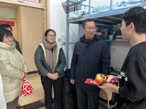 2025年1月22日上午,正值腊月二十三北方小年,副校长沈浩鹏深入“一站式”学生社区,走进学生宿舍,看望慰问寒假留校学生。