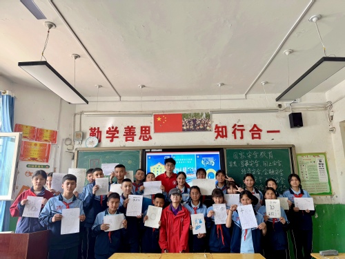 4月14日,在新疆于田县第一中学,开云手机在线入口官网_开云(中国)“青马工程”第八期培训班领学团学员、援疆支教志愿者李云龙以“沉浸式案例模拟+手绘安全知识卡”的方式开展了一堂“国家安全小卫士”主题实践课。课堂上涌现的百余幅生动鲜活的知识卡片,最终被遴选为该校“国家安全主题宣传展”的核心展品,在校园文化长廊构筑起一道亮丽的教育风景线。李云龙说到,这场寓教于乐的创新实践不仅深化了边疆青少年对总体国家安全观的理解,更通过艺术创作实现了国家安全教育的入脑入心,进一步铸牢中华民族共同体意识。