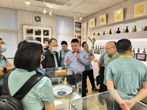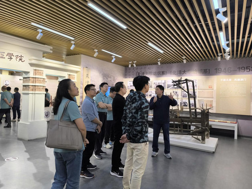 调研团一行参观了我校先进分离膜材料全国重点实验室、陶胎漆器工作室、中国古典民乐器文化与技艺体验厅、“有相之道”泥人张世家张宇作品展、纺织科学与工程学院展厅、校史馆和博雅书院。