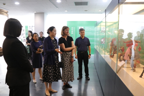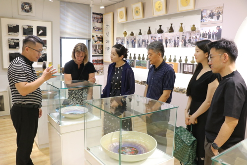 代表团一行还参观了在艺术学院举办的“有相之道”——泥人张世家张宇作品展,深入了解了泥人张近两百年的历史文化及其发展脉络,近距离观赏了张氏家族历代名家作品。在我校中华优秀传统文化与技艺国际传承创新基地,代表团一行参观了陶胎漆器工作室、中国古典民乐器文化与技艺体验厅。在郑勇教授的讲解下,代表团一行体验了非物质文化遗产“漆扇”的制作工艺,深刻感受了“陶胎+漆艺”的跨界创新魅力。