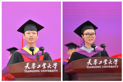物理科学与技术学院本科生谢玥、纺织科学与工程学院博士研究生胡献进作为毕业生代表发言,他们深情表达了对母校培养的感恩,并号召全体毕业生勇担时代使命,以青春的汗水与智慧,为祖国的繁荣昌盛贡献天工人的力量。