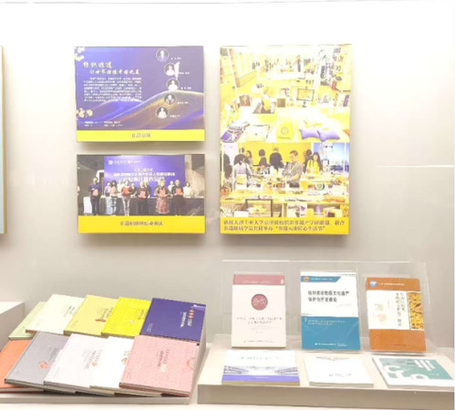 在学术成果展区,我校作为文化和旅游部、教育部特别遴选的独立设立展区院校之一,集中展示了我校成为首批试点院校以来,依托学校天津市普通高等学校人文社科重点研究基地,汇集经管、艺术、法学多学科优势资源,完成全国纺织非遗传承人群11期“研培计划”的有关情况。