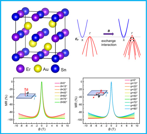 近期,国际材料科学著名期刊《Advanced Functional Materials》在线发表了我校电子与信息工程学院/集成电路学院王文洪教授团队完成的反铁磁性量子材料巨大磁阻效应的研究成果。该研究通过协同调控材料磁结构-能带结构的策略,首次在反铁磁性half-Heusler合金ErAuSn单晶中获得巨大磁阻效应(Large Negative Magnetoresistance and Quantum Oscillation in a Field-Induced Weyl Semimetal ErAuSn, Adv. Funct. Mater. 2025, 2505276)。