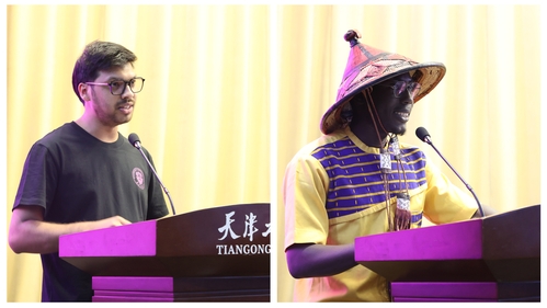 随后,来自孟加拉国的老生代表萨米尔上台发言,他分享了自己从初入校园的迷茫到荣获中国政府奖学金的成长历程,鼓励新生勇于挑战、珍惜时光。紧接着,来自布基纳法索的新生代表房灵舟登台发言,他以真挚的情感分享了与中国结缘的故事和对未来学习的期许。