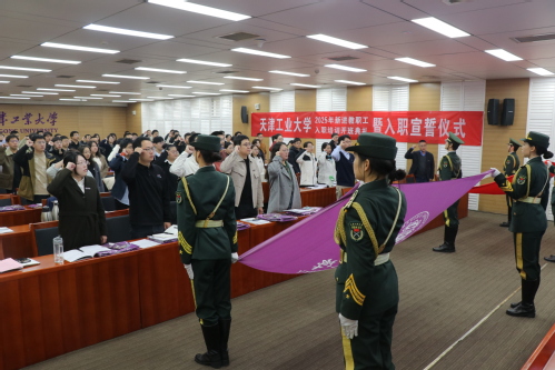 会上,校领导和相关部门负责人为2025年新入职教师代表佩戴了校徽。新入职教师签订了师德承诺书、课堂讲授承诺书。纺织科学与工程学院白岩老师代表新入职教职工发言,分享了自己作为一名新天工人的喜悦和自豪。随后,天津市杰出青年科学基金获得者、化学学院副院长孙跃老师作为在职青年教师代表,分享了自己在学校奋斗与成长的体会,鼓励新教师们坚定爱党、爱国、爱校的信念,积极融入团队,持之以恒努力,与学校共同发展进步。