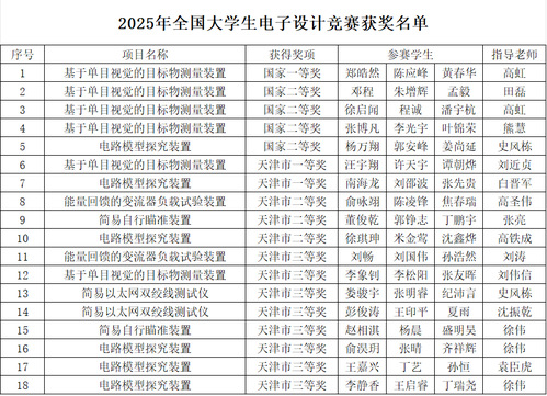 近日,全国大学生电子设计竞赛颁奖典礼在北京举行,我校在本次竞赛中斩获佳绩,获得国家级一等奖1项、二等奖4项,天津市级一等奖2项、二等奖3项、三等奖8项。