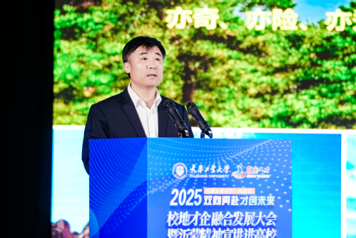 在校地才企融合发展大会上,张玉波代表学校致辞,对莒南县与会嘉宾的到来表示欢迎,并介绍了学校的基本情况表示,校地才企融合发展是一体推进教育、科技、人才高质量发展的有力行动,是“教育赋能地方、推动发展新质生产力”的生动实践。希望双方以此次合作签约为契机,进一步整合自身优势和资源,不断推进党建共建、人才引育、政产学研用融合、文化传承创新等领域合作,推动校地双向赋能、双向成就。